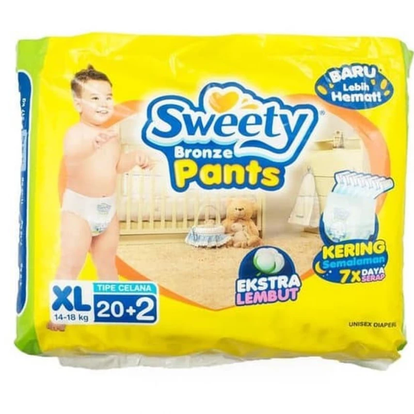 Sweety Bronze menggunakan fitur 360 derajat anti bocor yang mampu mengurangi risiko kebocoran. Saat dikenakan, si kecil bisa bebas bergerak dalam posisi apa pun. Sementara itu, Sweety Silver Pants L28 Diamond Layer Technology dilengkapi dengan Double Leak Guard yang mampu mencegah kebocoran pipis dari samping